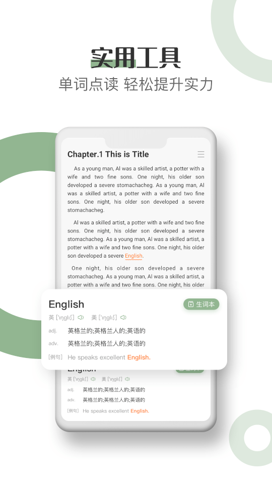 2、可以更高效地帮助用户提升英语水平,英语看书平台为用户配备了听说读写的辅助工具,从而让英语阅读的过程变得更加轻松顺畅。