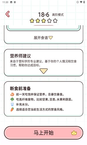 5、软件还贴心地为用户准备了轻断食前的小知识、建议、准备说明等内容。