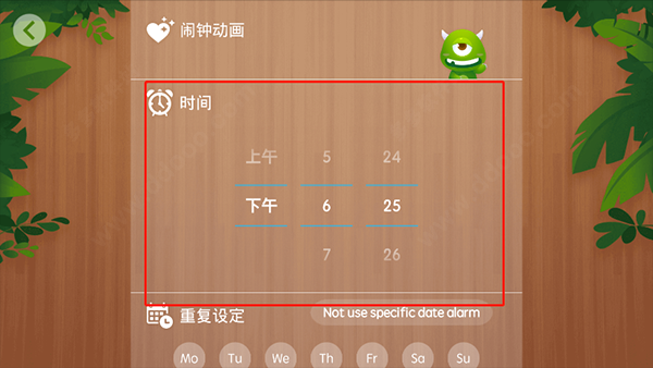 5、进入闹钟设置页面,用户可选择闹钟提醒时间。