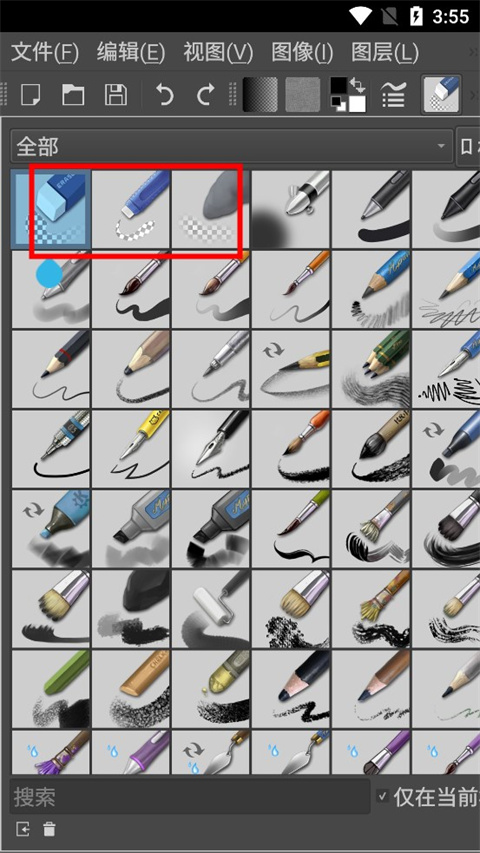 用户可在笔刷预设中找到各类橡皮擦,除手绘笔刷外,直线工具、矩形工具乃至渐变工具等多数工具,都能切换至擦除模式,用于擦除画布上的内容。