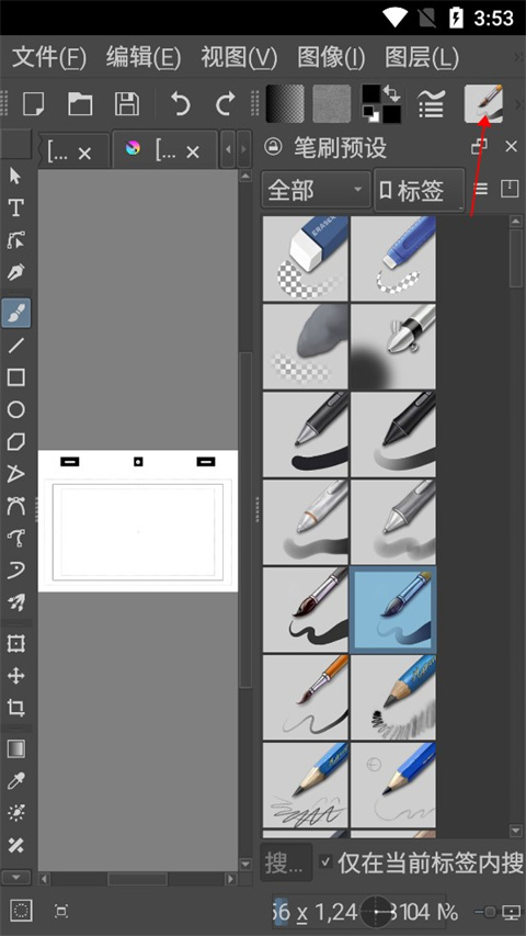 若你想尝试不同的笔刷,可在画布右侧的笔刷预设面板里进行选择。这个面板上排列着代表各类笔刷的方块,点击对应的方块就能完成笔刷切换。