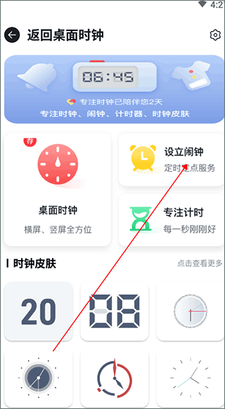 1、进入从本站安装的专注时钟,并点选“设立闹钟”功能选项。