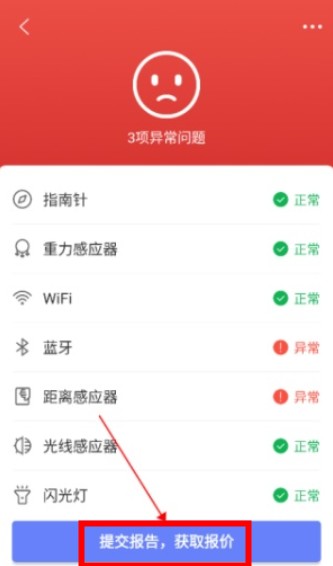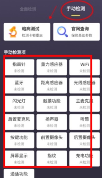 点击“开始检测”,系统将依次检查听筒、传感器等关键硬件。