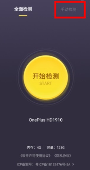 获取机大侠助手,可选择全方位检测或自定义手动检测模式。