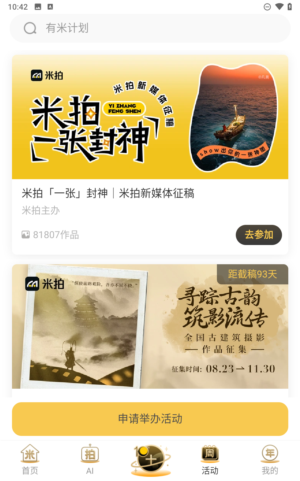 3、在【活动】板块中会不定时更新各个内容资讯,用户还可申请举办新活动。
