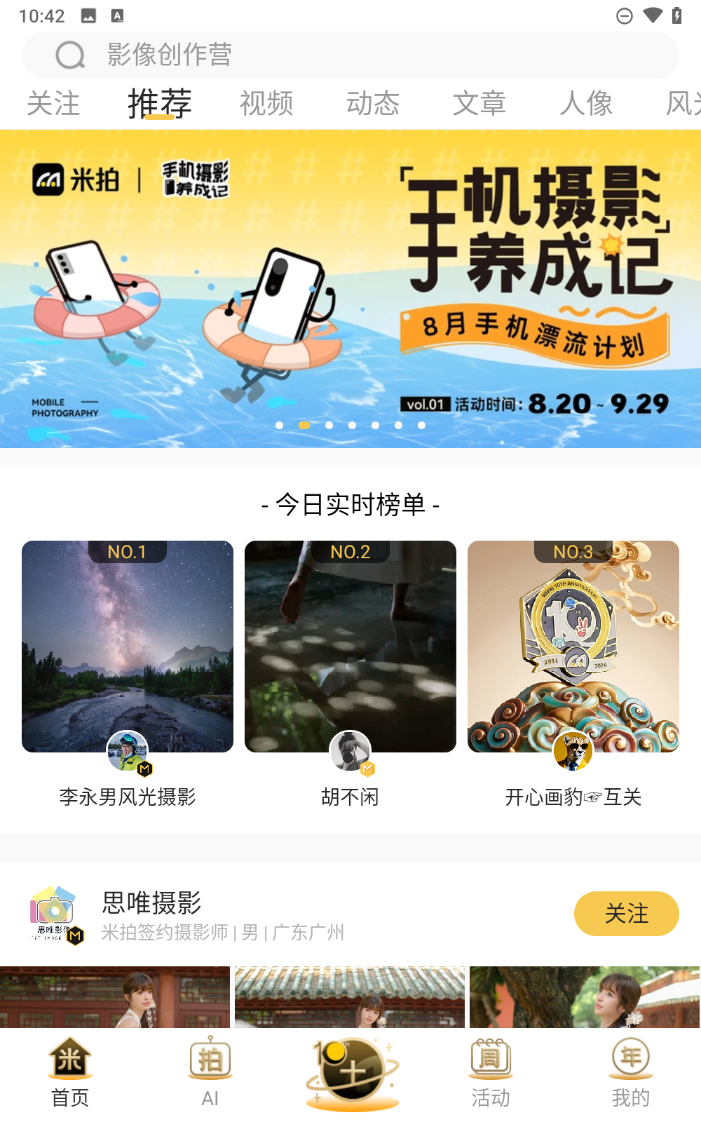 米拍摄影是为爱拍照的人量身打造的摄影社群软件,不管你是摄影新手还是资深爱好者,这里都能找到属于你的圈子。米拍摄影聚集了300多万摄影达人,随时能交流拍照心得、参与热门话题,还能边看边学。社区里不定期举办各种征稿比赛,拍得好还有机会赢现金、设备等奖品,让你拍照不只是兴趣,也能变成动力。米拍摄影也有大学生摄影营、航拍大赛、青年展这些超有氛围的活动,边玩边进步不再是梦。