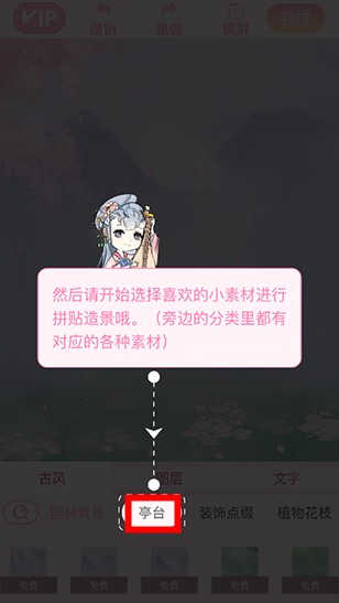 点击素材添加按钮,选择喜欢的素材进行装饰。