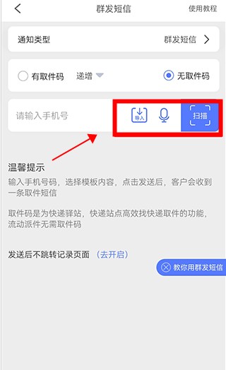可批量录入号码,一键发送取件提醒,提高派件效率。