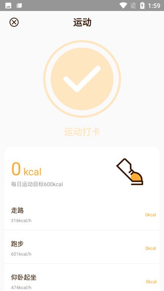 2、点击每日打卡板块中的“运动”,用户就可设定一个每日运动目标,完成目标就可进行打卡。