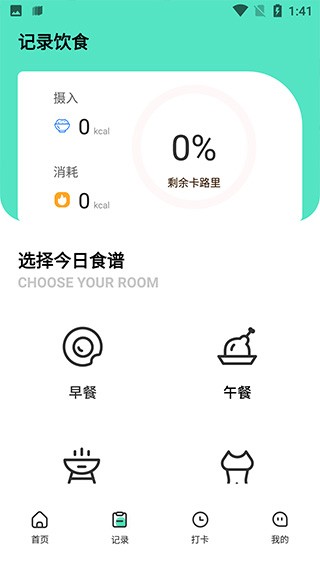 3、在“记录”页面,用户能够记录自己的每日饮食,记录自己的卡路里摄入量与消耗量。