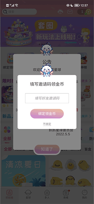1、抓抓星球的用户可将邀请码发送给好友以获得金币奖励,也可输入好友的邀请码,让双方得到奖励。