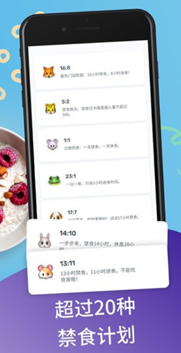 -提供多种间歇性断食模式,如16:8、5:2等;