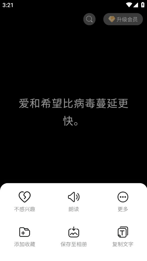 「得言」不仅拥有多样的主题,还允许用户自定义。保存包含语录的图片后,既能够将其设为手机壁纸,也可以发送给朋友,或者分享至微信朋友圈、微博等社交平台。