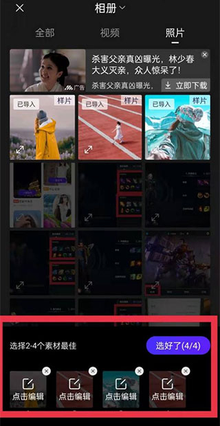 3、挑选一个自己钟爱的素材,选好图片与视频后点击“选好了”。