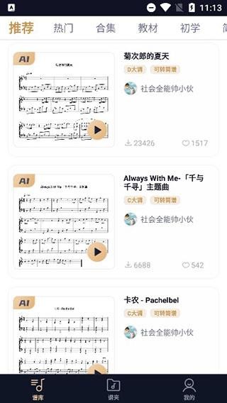 3、挑选你希望进行练习的曲谱,浏览曲库内多样的音乐资源。