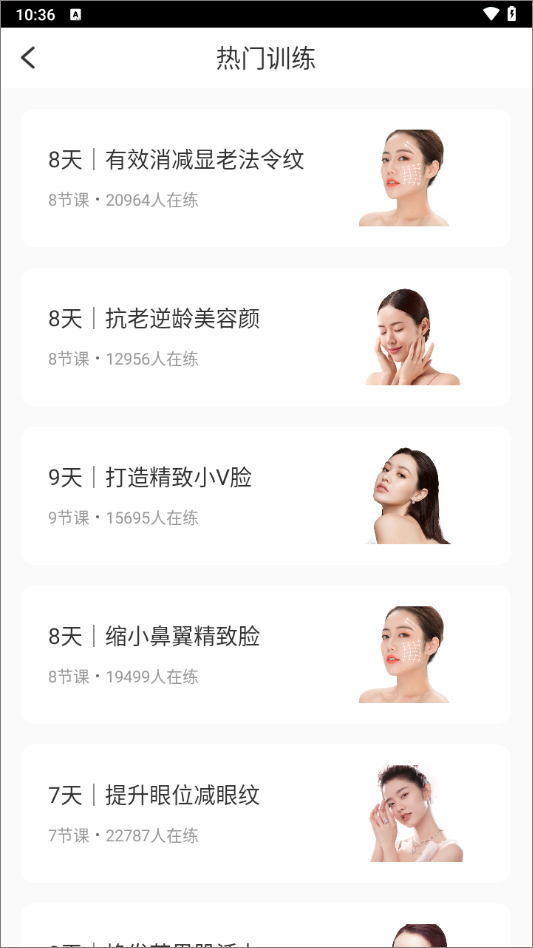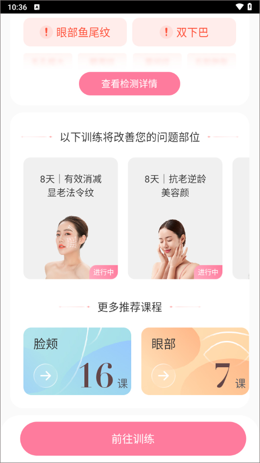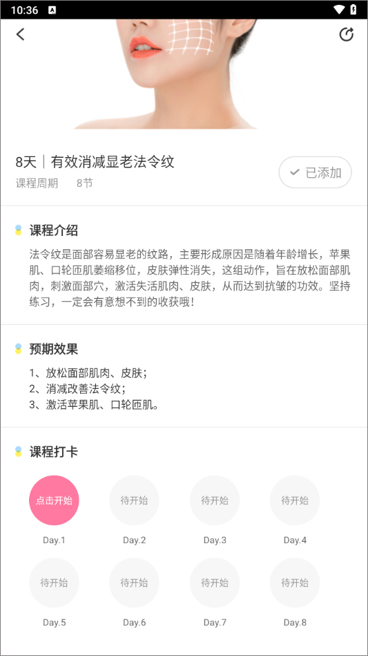 2、点击首个训练项目,可在8天内有效淡化显老的法令纹