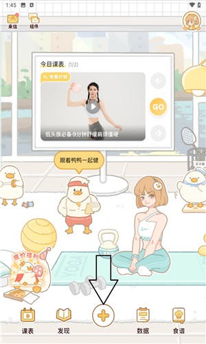 1、打开进入动起来鸭软件,点击首页中间的+按键