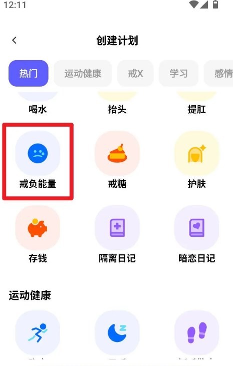 3、用户就能我的计划设置界面,点击【戒负能量】按键。