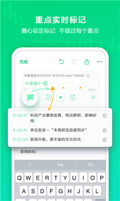 2、录音可随心裁剪,精彩片段轻松留存;重点信息支持一键标记,录音整理从此不再棘手。