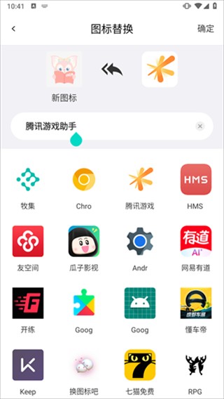 2、选择喜欢的图标,选定想要更换的应用,点击确认即可。