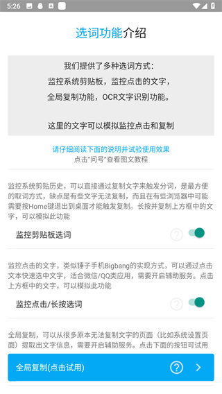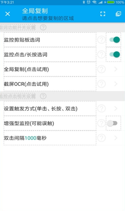 3、全局复制功能支持:在任意应用程序内,借助辅助操作即可完成跨应用的文字选取操作。