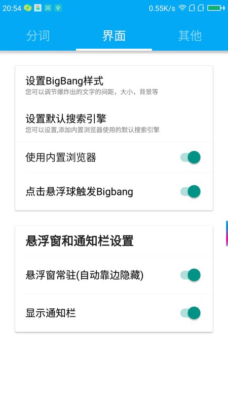 5、悬浮窗与通知栏快捷操作:可快速开启或关闭分词功能,无需频繁进入主界面操作。