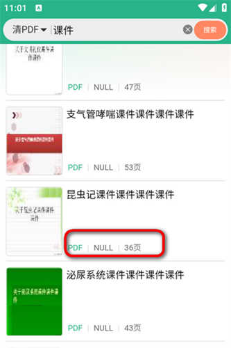 搜索结果页面会详细显示每份文档的类型、页数以及上传时间,方便用户快速判断是否符合需求。