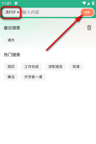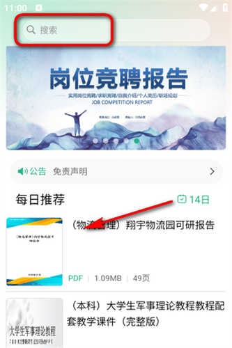在软件首页的搜索框输入关键词,如“论文模板”、“工作总结”等,系统会自动智能匹配相关文档。