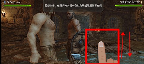 拖动左侧屏幕操控角色靠近敌人。