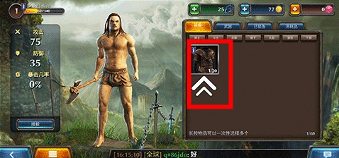 在角色界面穿戴装备提升战力。