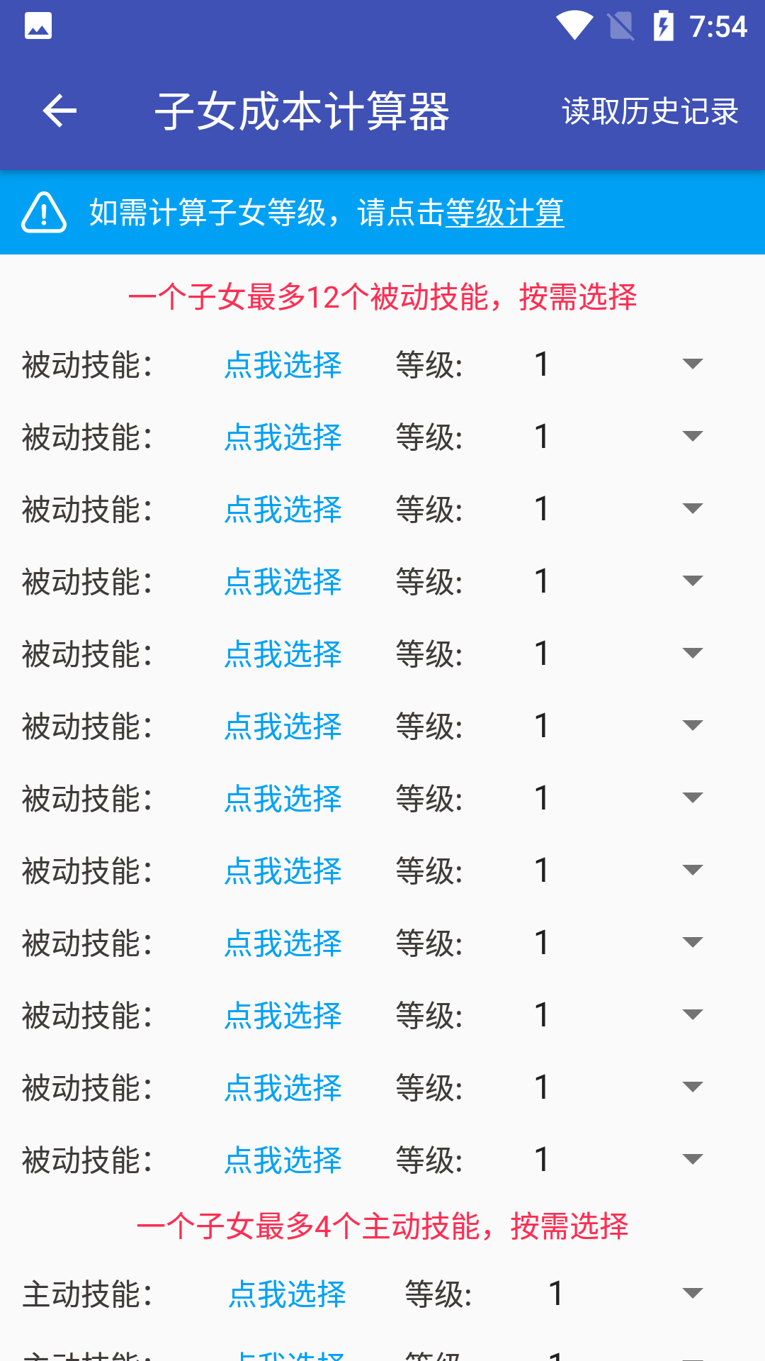 5、前往“计算器”模块,进行子女技能、亲密度、强化成本等数据模拟;