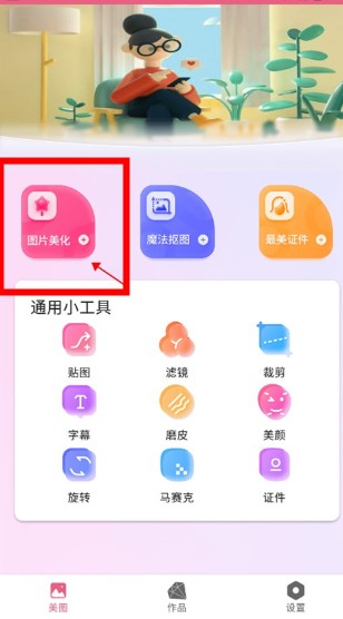 打开软件,选择主页的“图片美化”功能进行编辑。
