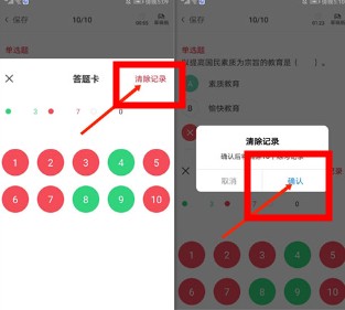 在答题卡页面,点击右上角“清除记录”,选择“确认”。