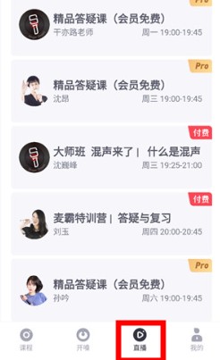 用户可观看直播教学,与导师交流提升唱歌技巧。