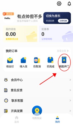 抵达后,在订单页面使用刷脸识别进入房间。