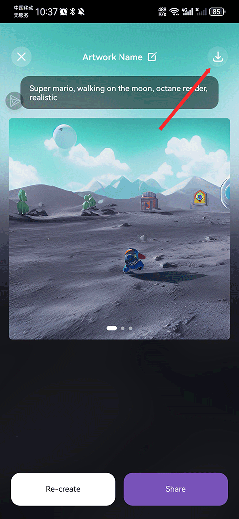 5、最后软件会为你生成AI图片,要是觉得满意,点击右上角的按钮就能把图片保存到相册啦