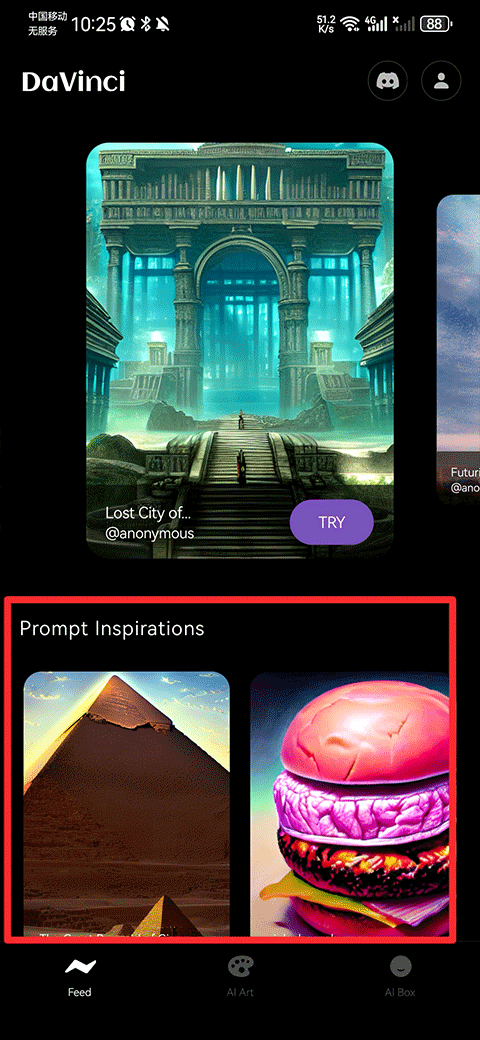1、打开达芬奇应用后,在feed界面里挑选你心仪的素材
