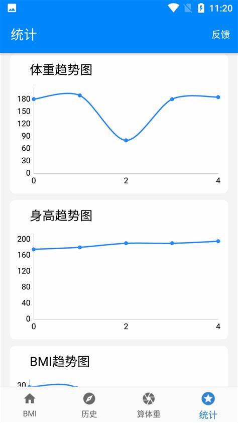 5、用户就可查看自己的历史BMI计算趋势,查看自己的身体变化。