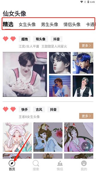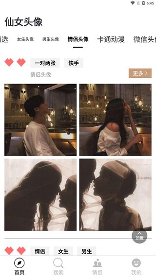4、仙女头像板块还专门设置了情侣头像专区,便于情侣用户挑选使用。