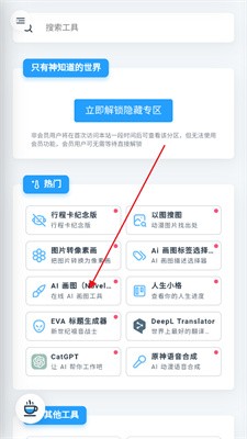 2、打开首页,里面集合了各种实用工具,支持关键词搜索快速找到所需功能。