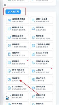 1、进入米库工具箱首页,滑动至【其他工具】区域,点击【快递查询】功能按钮,即可进入物流追踪页面。