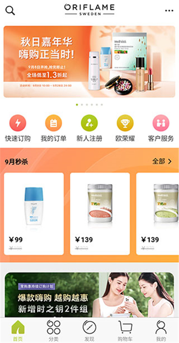 全新移动欧瑞莲:首页、分类、购物车、我的页面