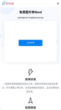 作为一款功能全面且使用便捷的AI工具应用,忙忙侠在市场上受到许多用户的好评。它不仅提供了图像处理的强大功能,还涵盖了文件格式转换等多种实用工具,极大提升了工作效率。无论是日常办公,还是创意设计,忙忙侠都能帮助用户更快速、更精准地完成任务。总的来说,忙忙侠是一款功能强大且用户友好的AI工具,适合各类需求的用户使用。