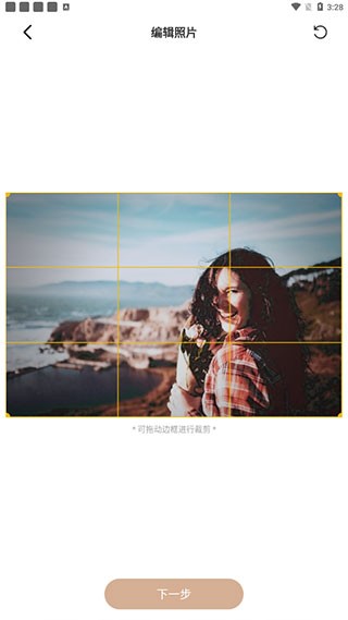 3、照片上传完成后,用户能够对照片进行裁剪和调整显示范围的操作,操作完成后点击“下一步”按钮即可继续后续流程。
