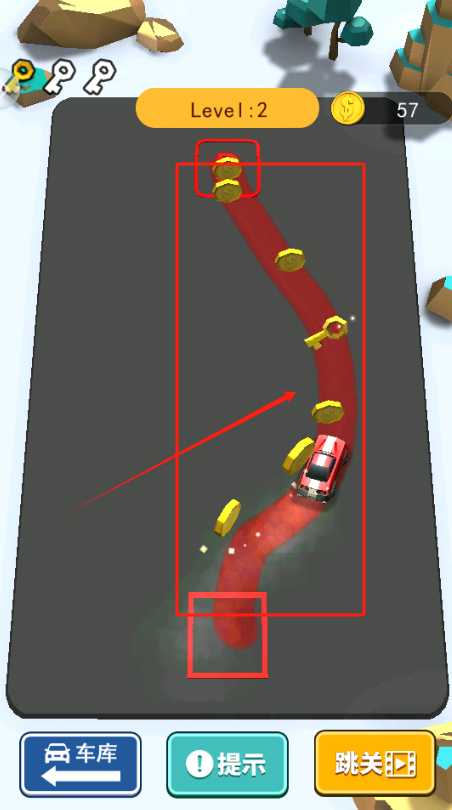 3、第二关注意吃金币和钥匙,想换车就点车库按钮。
