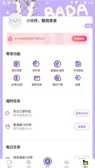 4、进入“我的”页面,用户能够通过完成任务来积累元气值与能量币,进而兑换更多福利。