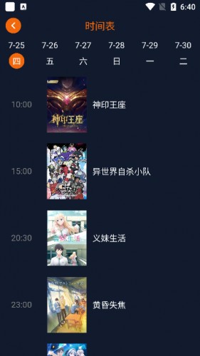 4、软件还具备时间表功能,能让用户清晰了解各类动漫的更新时间。