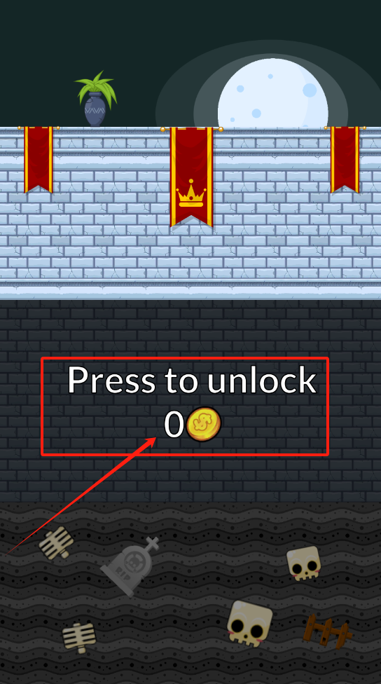 1、点击红框内的Press to unlock按钮解锁新内容,该操作需要消耗金币,不过目前金币数量为0,建议先积累金币。