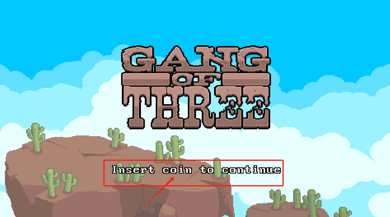 1、需投币方可启动游戏,界面会显示“GANG OF THREE”字样以及插入硬币的提示信息。