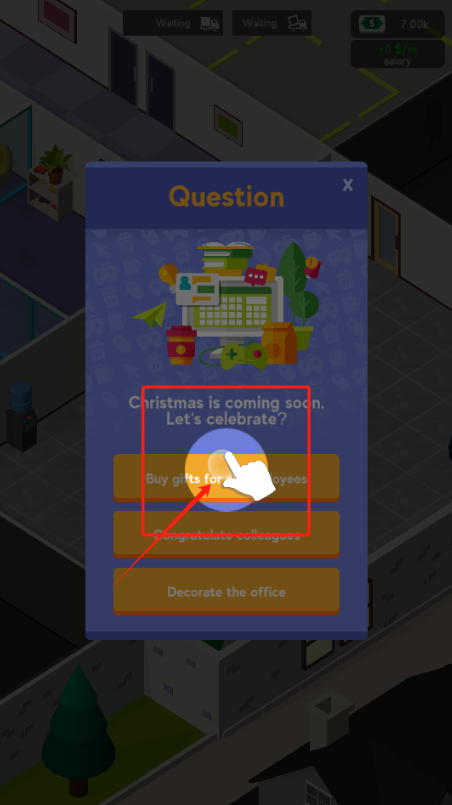 1、点击圣诞活动选项,挑选礼物或装饰类物品,与同事进行互动以完成任务,从而赚取相应奖励。